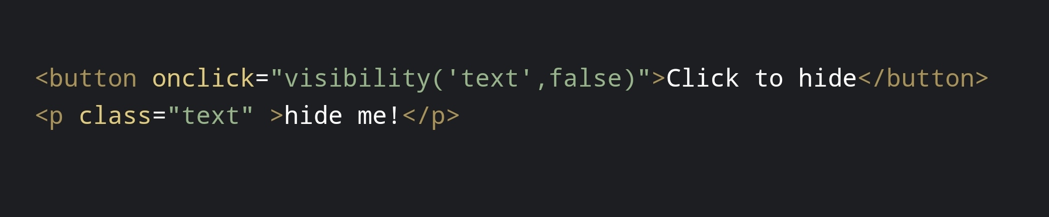 In this the button is the trigger/event with the function visibility('text',false) and paragraph is the target with id class="text".